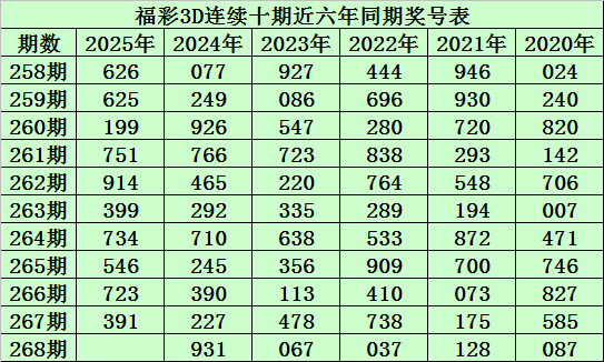 陈青峰福彩3D第2025268期推荐: