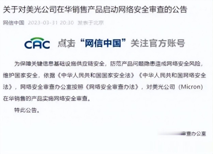 根据路透社的报道美光在2023年就已经被中国网信部门立案调查,这无疑就是在释放信号。