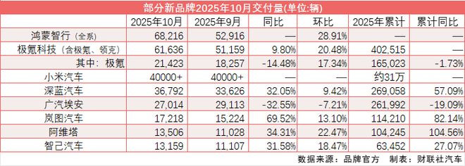 财联社11月1日讯(记者张屹鹏)告别“金九银十”后,由传统车企孵化而生的造车“新实力”正式进入2025年车市冲刺阶段。